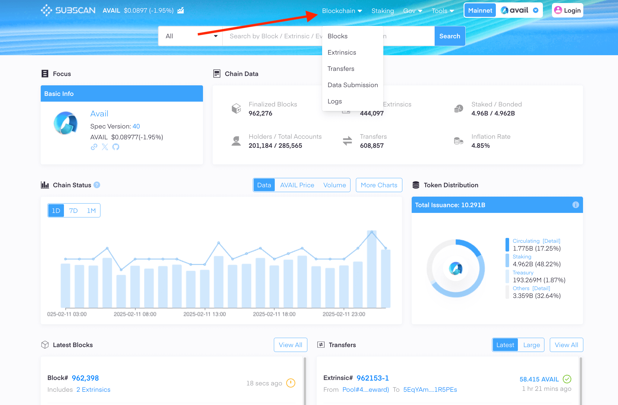 The Avail network has two main explorers that can be used to browse the network: